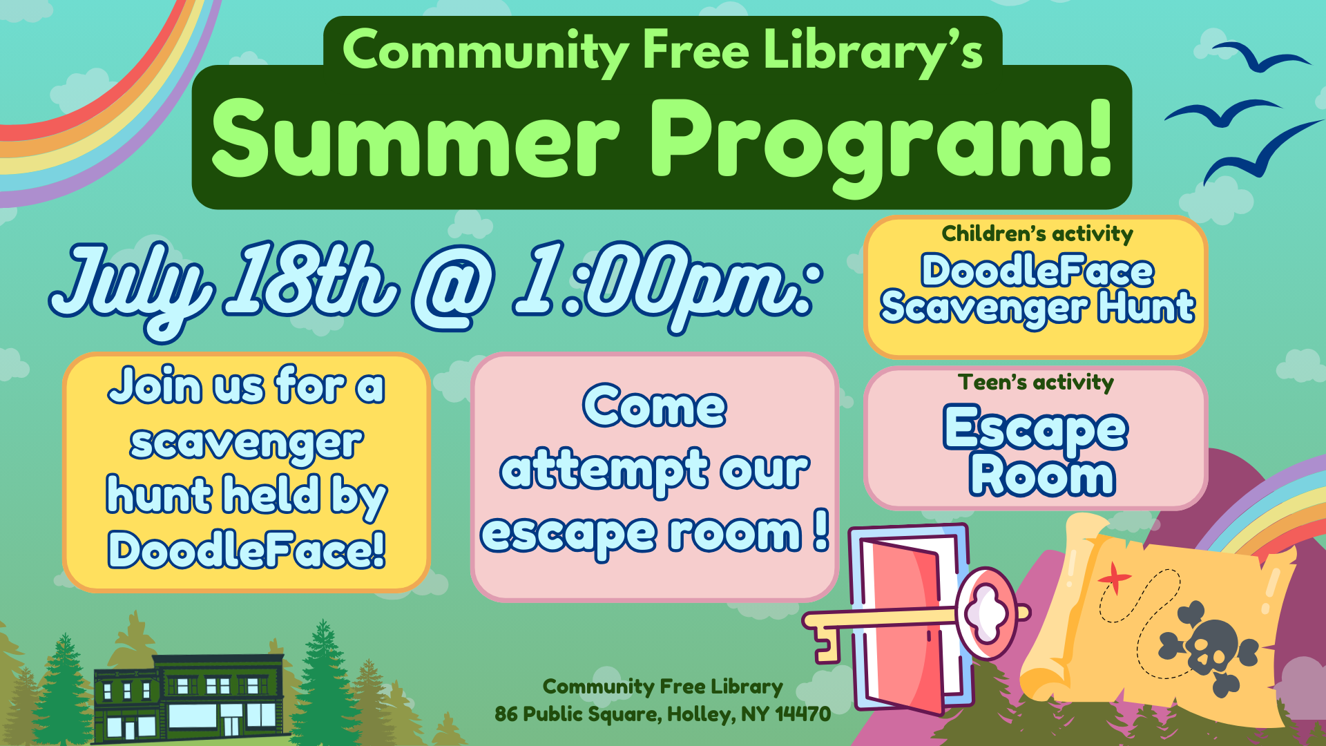 Come join us for a scavenger hunt for kids put on by DoodleFace, and our escape room for teens!
